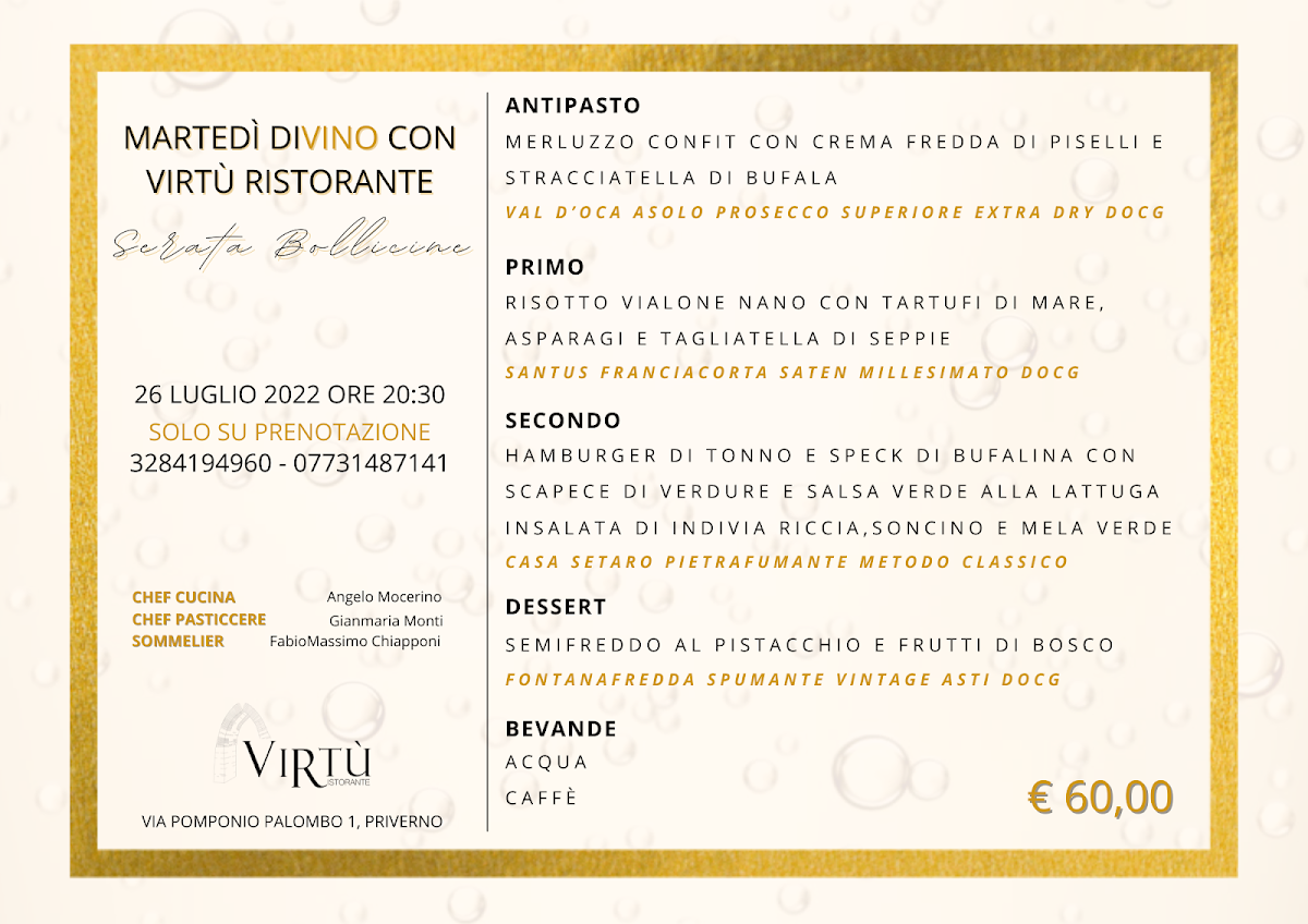 Ristorante Virtù (da Romoletto), nestled in the historic heart of Priverno, Italy, offers an inviting culinary journey that celebrates seasonal produce and quality ingredients. The menu is thoughtfully curated with a focus on simplicity and authenticity, featuring both fresh seafood and mountain flavors. Highlights include inventive seafood antipasti, where delicate fish are paired with spices and fruit to create vibrant, memorable combinations that surprise the palate.